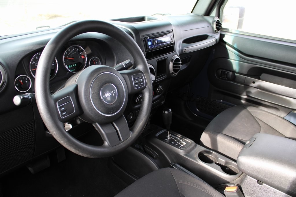 Clean CARFAX. 4-Wheel Disc Brakes, 8 Speakers, ABS brakes, AM/FM radio, Audio Jack Input for Mobile Devices, CD player, Cloth Seats w/Adjustable Head Restraints, Compass, Driver vanity mirror, Dual front impact airbags, Front anti-roll bar, Front Bucket Seats, Front Center Armrest w/Storage, Half Metal Doors w/Locks, Integrated roll-over protection, Low tire pressure warning, Plastic Front Door Window, Power steering, Quick Order Package 24C, Steering wheel mounted audio controls, Sunrider Soft Top.
